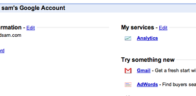 Right at the top there should be a bold heading saying "My Services" with Analytics listed under it. If Analytics isn't listed there (those that already had a Google account), then locate it under the Try something new header. You might have to click on the More >> link to locate it.